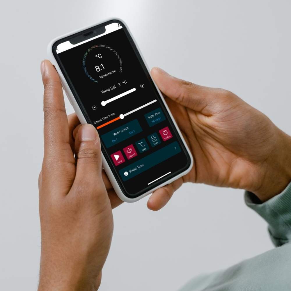 A Wi-Fi compatible, professional-level chiller and filtration system with remote operation.