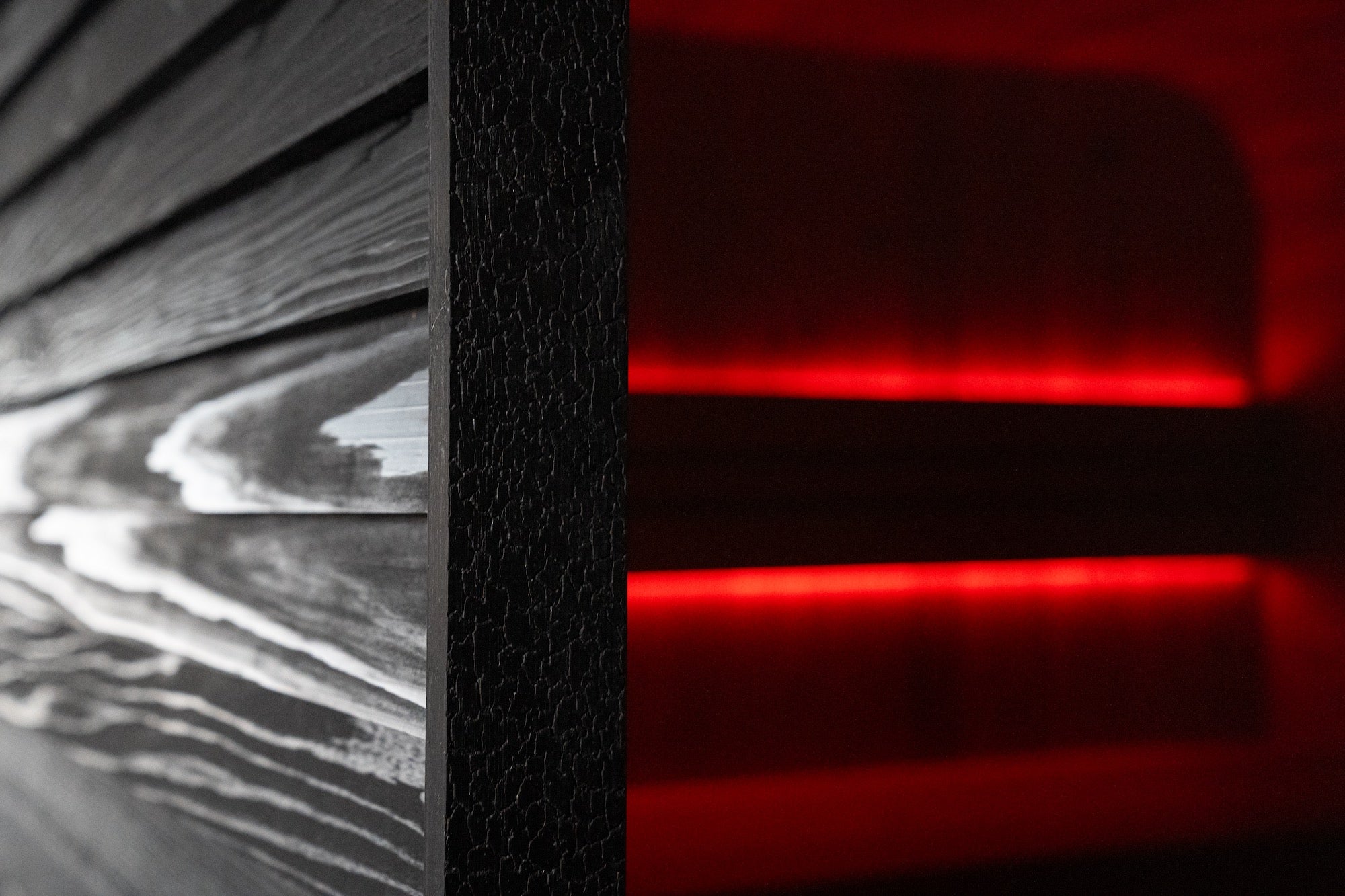 Most home-sauna's look the same. Yawn. When you choose Psycle you choose boldness. Japanese inspired charred timber and smoke-tinted full glass panels are dramatically offset by deep red or amber lighting, creating a powerful mood.